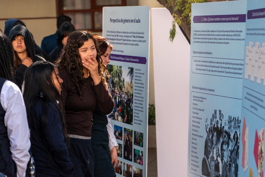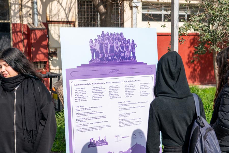 Para abordar esta problemática el Área de Educación y Difusión, en conjunto con su Núcleo de Género de la ST del CMN, impulsó el proyecto Ciudad de las Mujeres, a través del Fondo de Acciones Culturales Complementarias de la Unidad de Género. Durante 2024, se trabajó con más de 40 estudiantes del “Taller de Patrimonio, Archivos e Investigación” del Liceo N° 1 Javiera Carrera, con quienes se realizó una salida patrimonial para reconocer los monumentos del entorno de su establecimiento, y una serie de talleres teóricos y prácticos, donde se analizó la historia, usos y tipologías de monumentos públicos.
