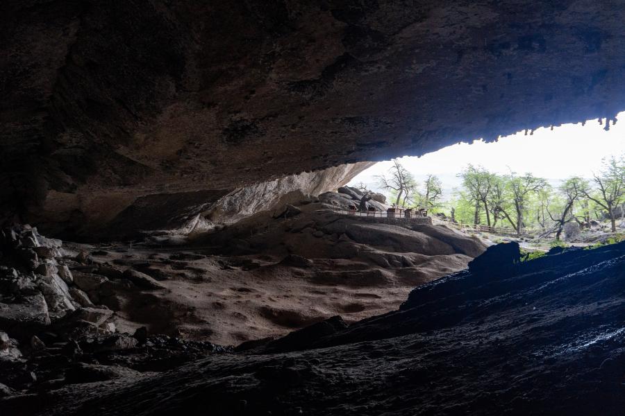 El milodón corresponde a un mamífero extinto hace diez mil años, de grandes proporciones y emparentado con los armadillos, los osos hormigueros y los perezosos actuales. Habitó en las praderas del sur de Argentina y de Chile, en Tierra del Fuego. Aunque se han encontrado restos arqueológicos en la zona norte de Chile, en Los Vilos. Fue encontrado en 1895 en una gran cueva natural, en la provincia de Última Esperanza, a 24 kilómetros al norte de Puerto Natales. Esta cueva se originó en la última expansión glaciar del Cuaternario, hace unos veinte mil años, producto del fuerte oleaje de un lago proglacial que habría erosionado la lutita que forma el macizo rocoso. Según Mateo Martinic, el hallazgo del milodón se efectuó en una exploración de Hermann Eberhard, colono alemán establecido en las praderas de Última Esperanza en 1893. En la expedición participaron Eberhard, su hijo Hermann y Von Heinz, un colono inglés de apellido Waldron, el ovejero Andrés o Teodoro Huesphers y el empleado de Eberhard, Ricardo Krüger. La expedición se organizó con motivo de recorrer el accidente natural que concitaba curiosidad en los habitantes de la estancia de Puerto Consuelo, propiedad de Eberhard. En el lugar los exploradores encontraron a la entrada de la cueva mayor, de unos 80 metros de ancho por 200 metros de largo, un trozo de piel con características nunca antes vistas. El mismo estaba cubierto con pelos largos y tenía incrustados huesecillos de manera irregular. Dicho trozo fue utilizado como trofeo por los colonos, colocándolo en la estancia para que los curiosos lo viesen. Este hallazgo comenzó a concitar la atención internacional cuando el geólogo Otto Nordenskjöld y el paleontólogo argentino Florentino Ameghino efectuaron publicaciones académicas al respecto. En relación a la extinción del milodón se señalan múltiples hipótesis, entre las que desatacan las que enfatizan el cambio climático, el hecho de que haya sido objeto de caza por parte de los indígenas del territorio o producto de la actividad volcánica.