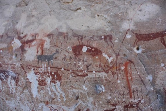 Las pinturas rupestres son manifestaciones cotidianas que realizaron los primeros habitantes en cavernas, cuevas y rocas; casi siempre se realizaron como pinturas, grabados y raspados con tintas vegetales y con ellas registraban momentos de su vida cotidiana, por ejemplo, cazando grandes animales. En el caso de los nativos prehispánicos de Atacama, esto se hizo a través de intervenciones hechas sobre rocas o en las arenas del desierto en color gris y rojo.