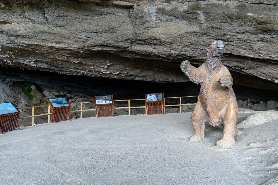 El milodón corresponde a un mamífero extinto hace diez mil años, de grandes proporciones y emparentado con los armadillos, los osos hormigueros y los perezosos actuales. Habitó en las praderas del sur de Argentina y de Chile, en Tierra del Fuego. Aunque se han encontrado restos arqueológicos en la zona norte de Chile, en Los Vilos. Fue encontrado en 1895 en una gran cueva natural, en la provincia de Última Esperanza, a 24 kilómetros al norte de Puerto Natales. Esta cueva se originó en la última expansión glaciar del Cuaternario, hace unos veinte mil años, producto del fuerte oleaje de un lago proglacial que habría erosionado la lutita que forma el macizo rocoso. Según Mateo Martinic, el hallazgo del milodón se efectuó en una exploración de Hermann Eberhard, colono alemán establecido en las praderas de Última Esperanza en 1893. En la expedición participaron Eberhard, su hijo Hermann y Von Heinz, un colono inglés de apellido Waldron, el ovejero Andrés o Teodoro Huesphers y el empleado de Eberhard, Ricardo Krüger. La expedición se organizó con motivo de recorrer el accidente natural que concitaba curiosidad en los habitantes de la estancia de Puerto Consuelo, propiedad de Eberhard. En el lugar los exploradores encontraron a la entrada de la cueva mayor, de unos 80 metros de ancho por 200 metros de largo, un trozo de piel con características nunca antes vistas. El mismo estaba cubierto con pelos largos y tenía incrustados huesecillos de manera irregular. Dicho trozo fue utilizado como trofeo por los colonos, colocándolo en la estancia para que los curiosos lo viesen. Este hallazgo comenzó a concitar la atención internacional cuando el geólogo Otto Nordenskjöld y el paleontólogo argentino Florentino Ameghino efectuaron publicaciones académicas al respecto. En relación a la extinción del milodón se señalan múltiples hipótesis, entre las que desatacan las que enfatizan el cambio climático, el hecho de que haya sido objeto de caza por parte de los indígenas del territorio o producto de la actividad volcánica.