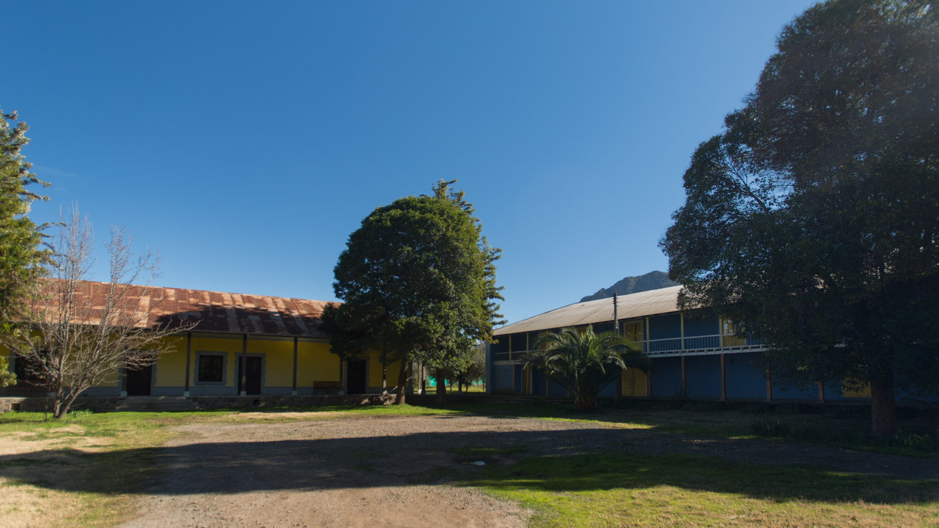 Su distribución arquitectónica gira en torno a un gran patio, con una división jerárquica de las bodegas y las casas de los inquilinos. En su acceso se observan dos gruesos pilares de albañilería que señalan la entrada a la Hacienda, cuya Casa Patronal se divisa al fondo. Debido a que se construyó por etapas, la edificación demoró más de 130 años en concluirse. En un primer periodo comprendido entre 1790 y 1850 se levantó la estructura original de la Hacienda que comprendía la primera Casa Patronal, la Capilla y las bodegas. En la segunda etapa, realizada entre fines del siglo XIX y principios del XX, se conforman los patios de labores, para lo cual se edificaron las habitaciones para la servidumbre, situadas de manera perpendicular a la primera casa patronal; también se levantó otro volumen donde se ubica el molino y la panadería; posteriormente se agregan la llavería y las bodegas situadas en la parte posterior de la Capilla, conformándose un patio principal.