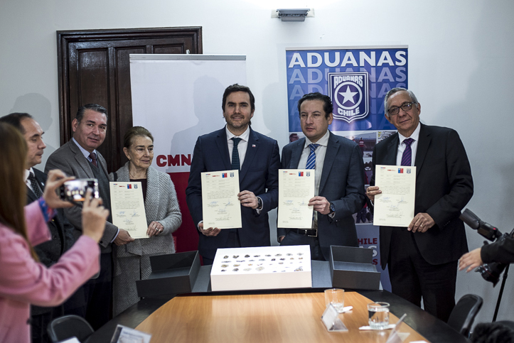 Así, este lunes en la sede del Consejo de Monumentos Nacionales el Subsecretario de Hacienda, Francisco Moreno; el Director Nacional de Aduanas, Claudio Sepúlveda; el Director del Servicio Nacional del Patrimonio Cultural, Javier Díaz; la Directora de la Dirección de Asuntos Culturales del Ministerio de Relaciones Exteriores, Maritza Parada, hicieron entrega formal del valioso hallazgo al Cónsul General Adjunto del Estado Plurinacional de Bolivia, Juan Carlos Dueñas Muñoz.