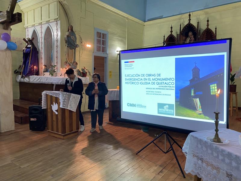 En respuesta a una solicitud de la comunidad de Quetalco, en la comuna de Dalcahue, provincia de Chiloé, la Secretaría Técnica del Consejo de Monumentos Nacionales (ST CMN), dependiente del Servicio Nacional del Patrimonio Cultural (Serpat), impulsó el desarrollo de obras de emergencia en la Iglesia de la localidad, la cual fue declarada Monumento Histórico en 2021. Los trabajos se extendieron entre abril y julio de 2024, y tuvieron un costo de poco más de 43 millones de pesos.