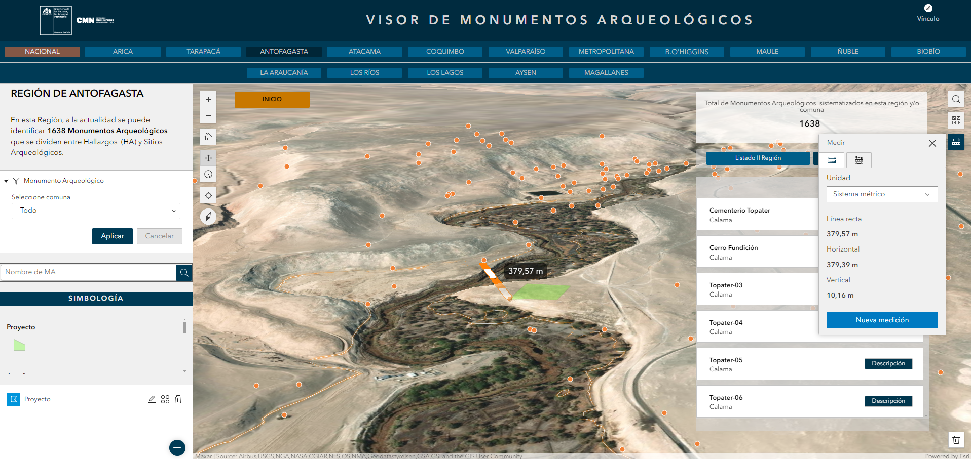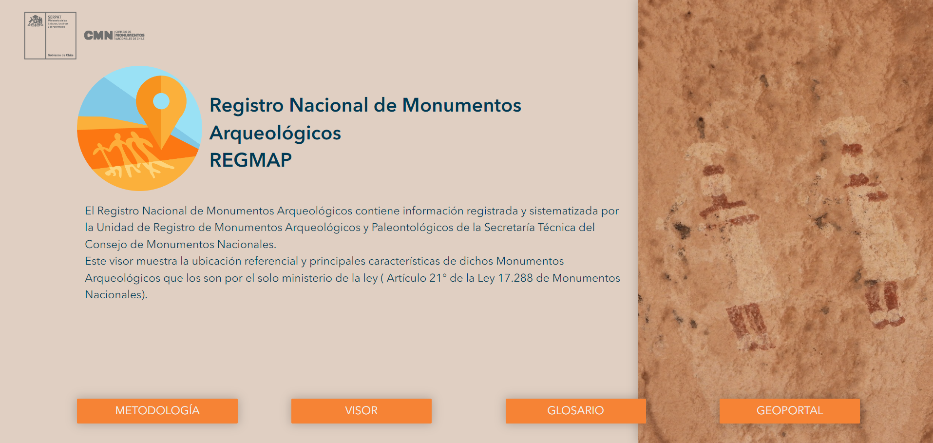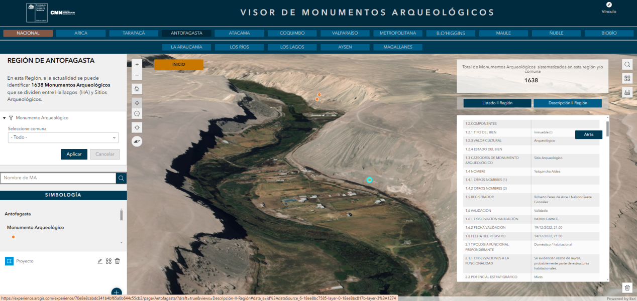 Elaborado por la Unidad de Registro de Monumentos Arqueológicos y Paleontológicos, el visor permite una exploración virtual detallada, donde se puede consultar y visualizar cada monumento georreferenciado, con información, datos y estadística a nivel nacional y la opción de chequear la información por región y comuna.
